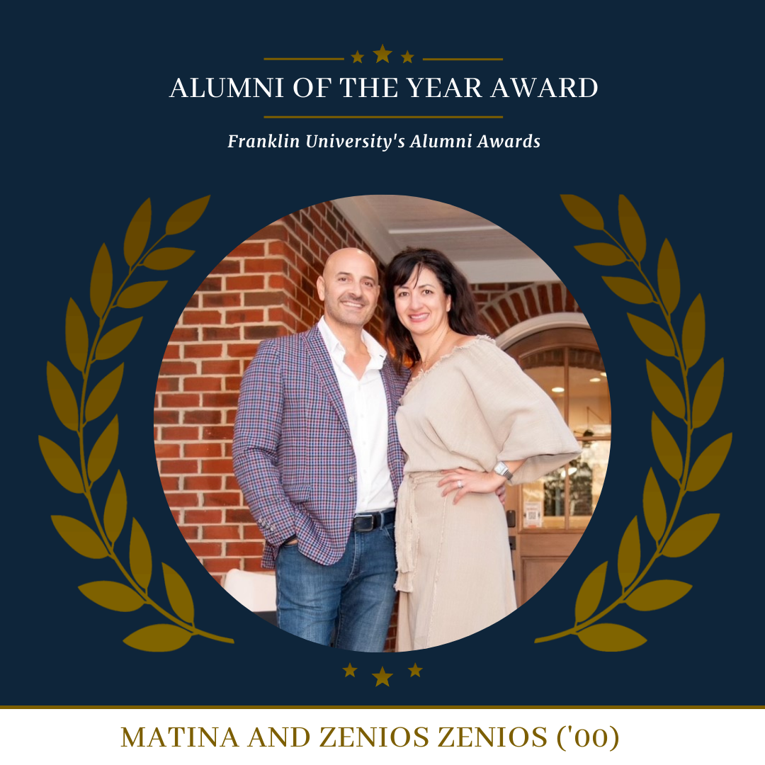 The Alumni of the Year Award, now in its fourth year, celebrates alumni who have made significant contributions to the University and their communities. Matina and Zenios, both Franklin MBA graduates, exemplify this commitment through their impactful leadership, philanthropy, and dedication to enhancing their industries and the lives of others.