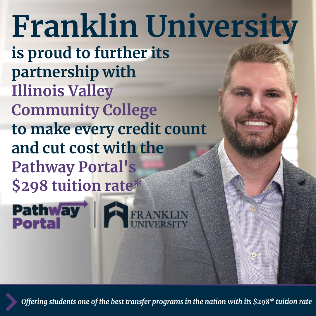 Franklin University is excited to announce its Pathway Portal partnership with Illinois Valley Community College (IVCC), a collaboration that strengthens both institutions’ commitment to helping students pursue affordable, flexible, and seamless bachelor’s degree pathways. This partnership creates more opportunities for learners to advance their education close to home and on their own schedule.