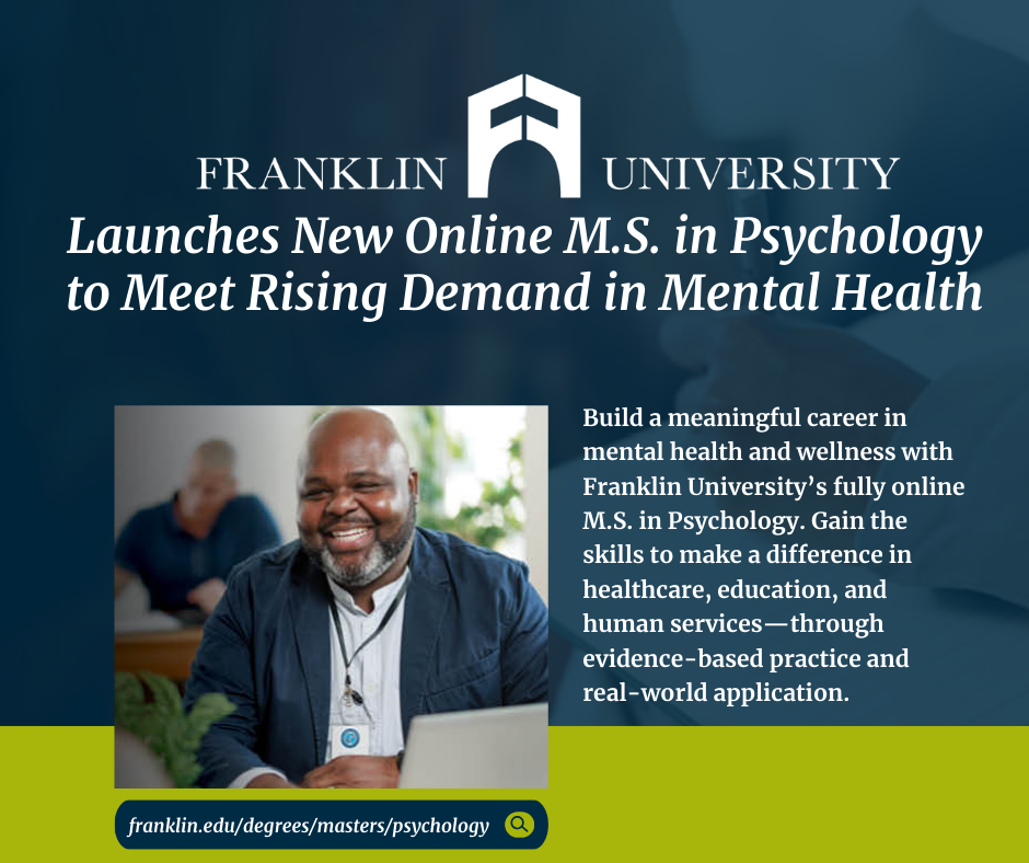 As mental health and wellness continue to take on greater prominence across communities, workplaces, and healthcare systems, the demand for qualified professionals is growing rapidly. With the U.S. Bureau of Labor Statistics projecting a 22% growth in mental health-related jobs by 2031, Franklin University is proud to introduce its new M.S. in Psychology, designed to equip learners with the knowledge and skills to help shape the future of mental health care, workplace well-being, and community wellness.