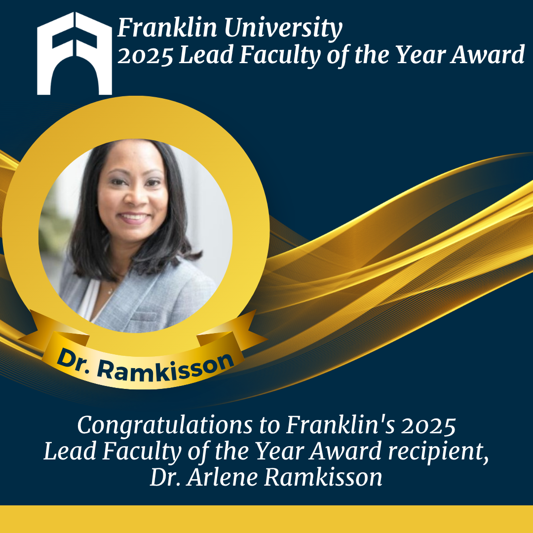 Franklin University proudly announces that Dr. Arlene Ramkissoon has been selected as the 2025 Lead Faculty of the Year, honoring her outstanding leadership in teaching, course management, and faculty mentorship. The award recognizes faculty who model excellence in instruction and provide strategic guidance to adjunct instructors across multiple course sections.